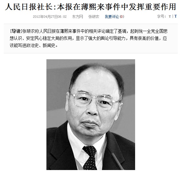 新華社四月十四日,在薄熙來被撤掉政治局委員職務四天之後發表評論文章說,“一些干部的配偶和孩子利用他們的權力謀取個人利益,無視法律。”
